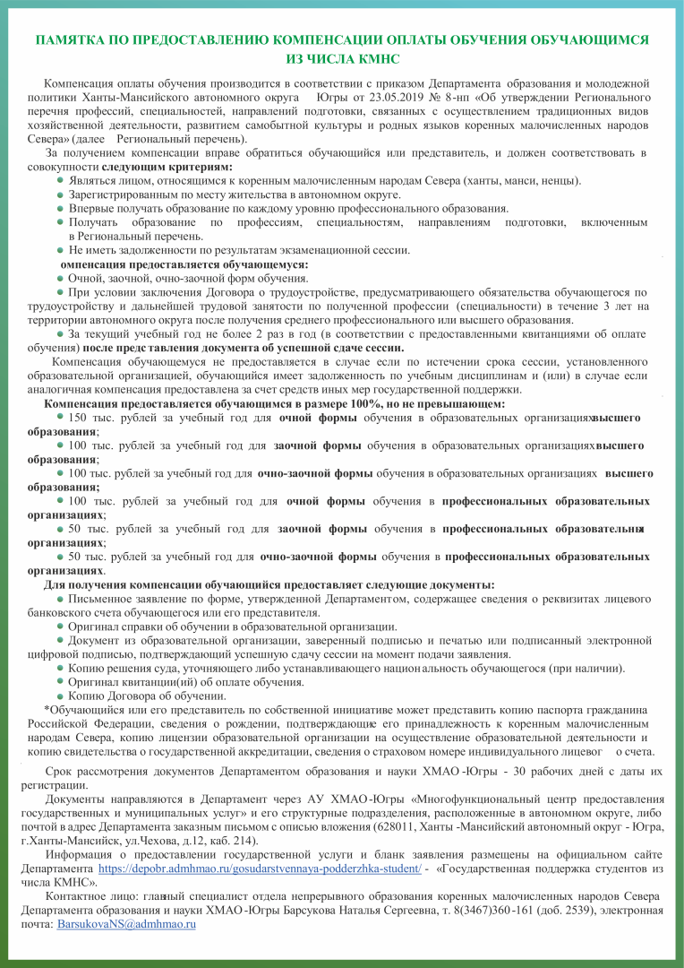 Государственная поддержка обучающихся из числа КМНС