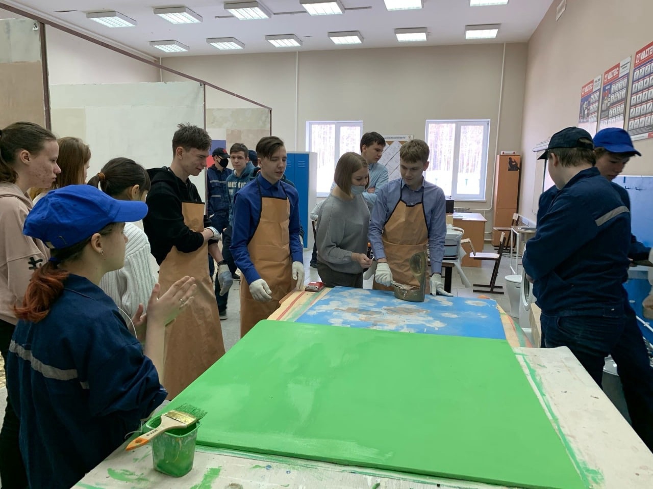 В процессе мероприятия для гостей прошёл мастер класс, на котором выпускники смогли "примерить" данную профессию поработав кисточками и шпателями, а также задать интересующие их вопросы.