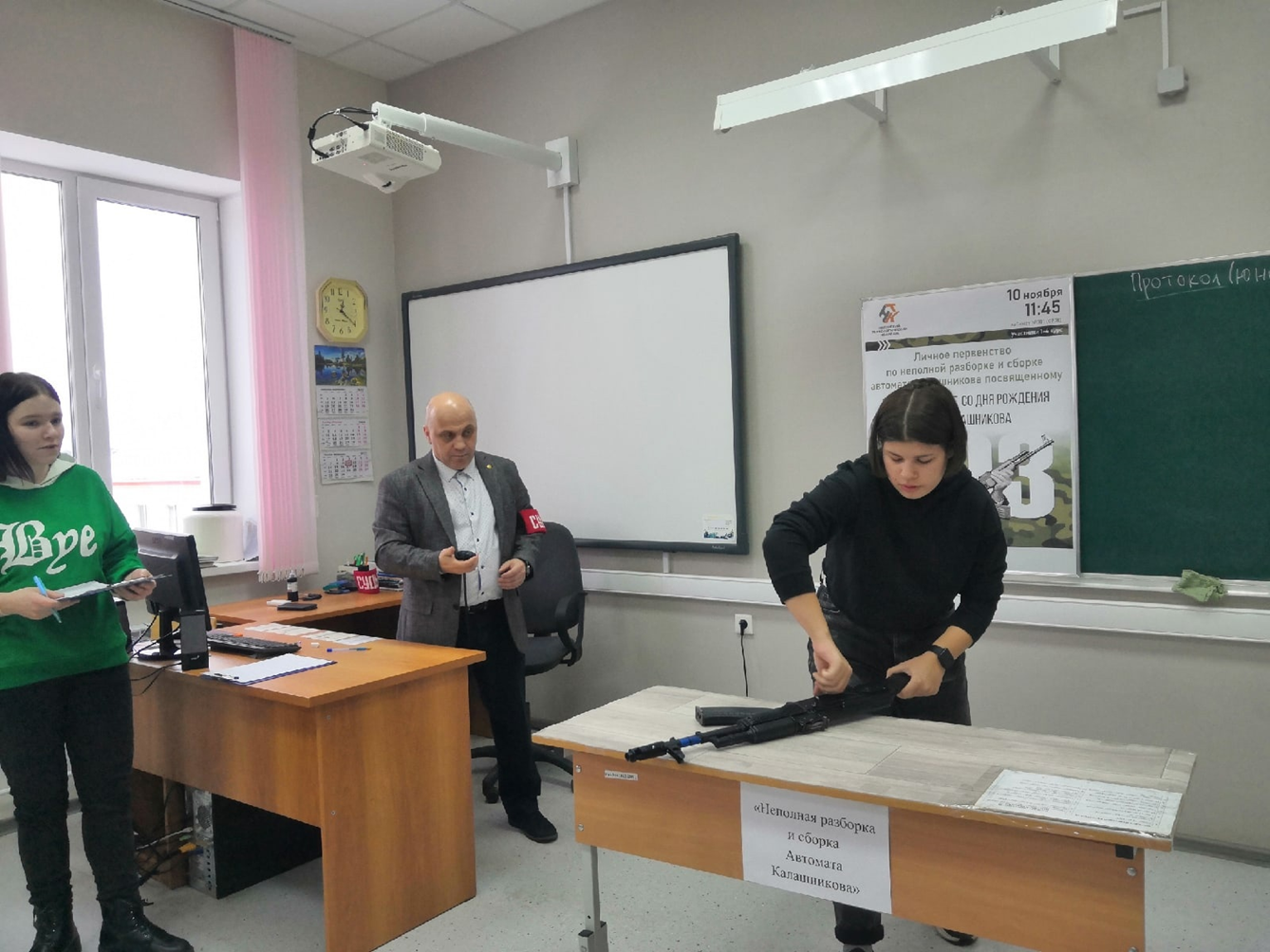 10 ноября в БУ "Няганский технологический колледж " среди обучающихся 1-4 курсов прошло личное первенство по неполной разборке и сборке автомата Калашникова,посвященное 103 годовщине со дня рождения Михаила Тимофеевича Калашникова (1919-2013)