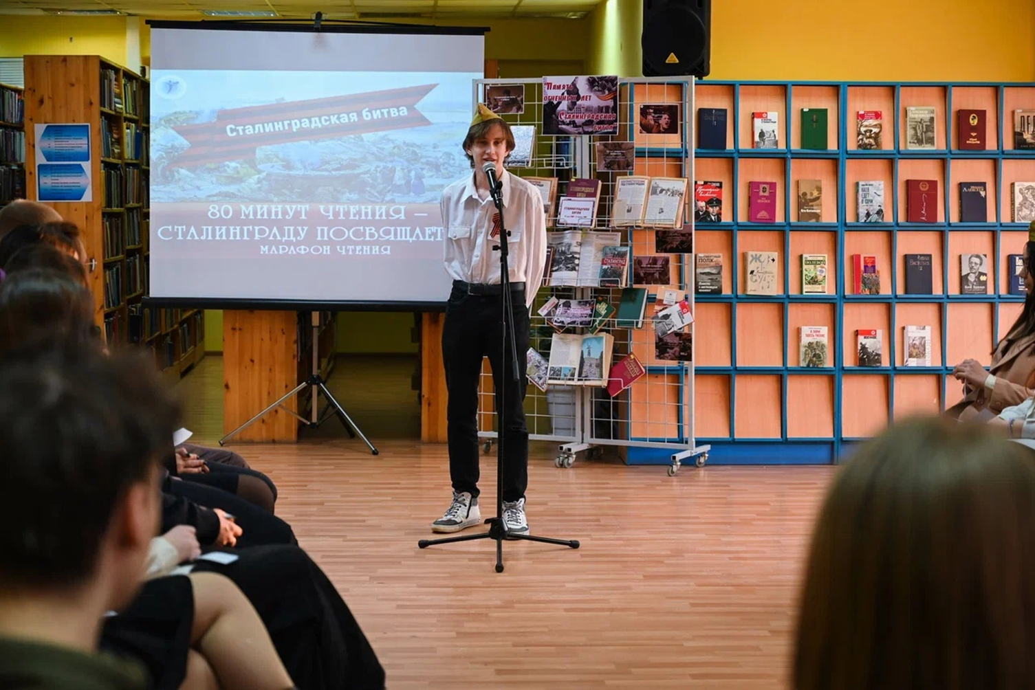 В Центральной городской библиотеке состоялся литературно-патриотический марафон, посвящённый 80-летию Сталинградской битвы. Его участниками стали обучающиеся БУ "Няганский технологический колледж" и молодые сотрудники ОМВД г.Нягани. Каждый прочитал строки известных и неизвестных авторов о Сталинградской битве.