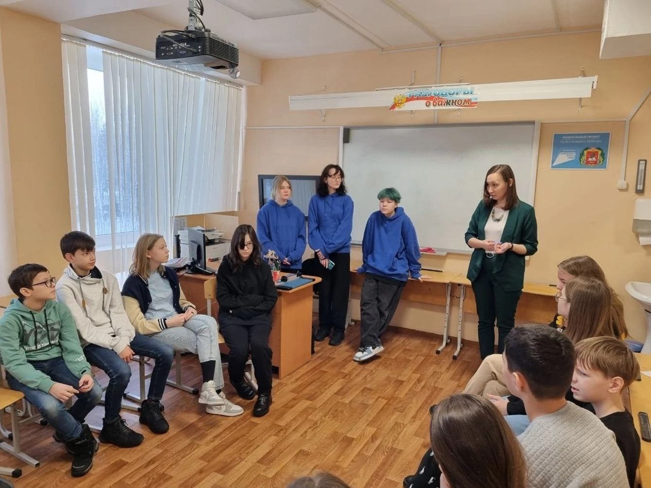 11.02.2023 года обучающиеся группы ГД-22 БУ "Няганский технологический колледж" под руководством педагога-психолога колледжа Кудрявцевой Марины Сергеевны провели занятие на тему "Вместе против буллинга" с обучающимися 7 "Е" класса МАОУ г. Нягани "СОШ №6 им. А.И. Гордиенко".