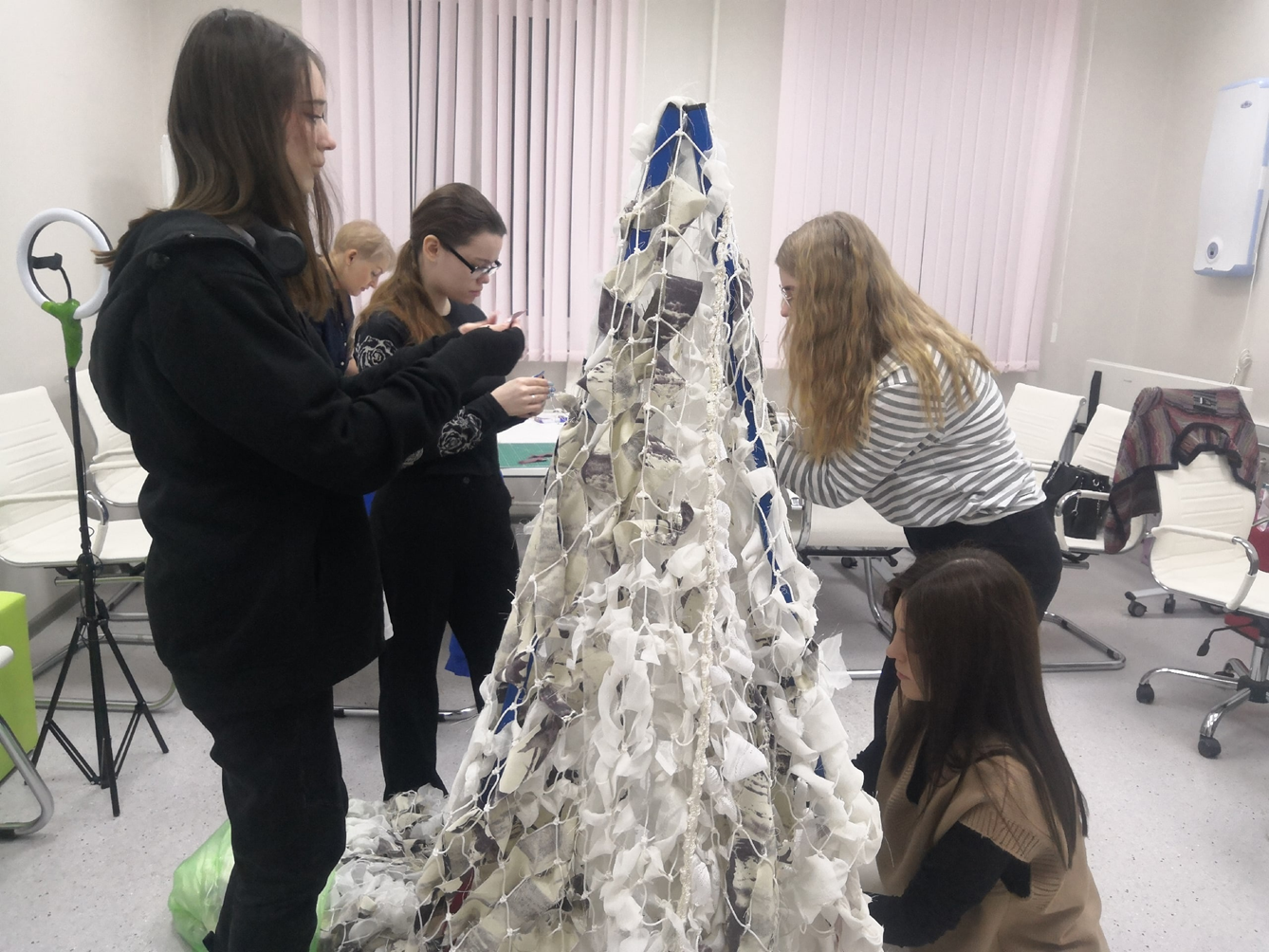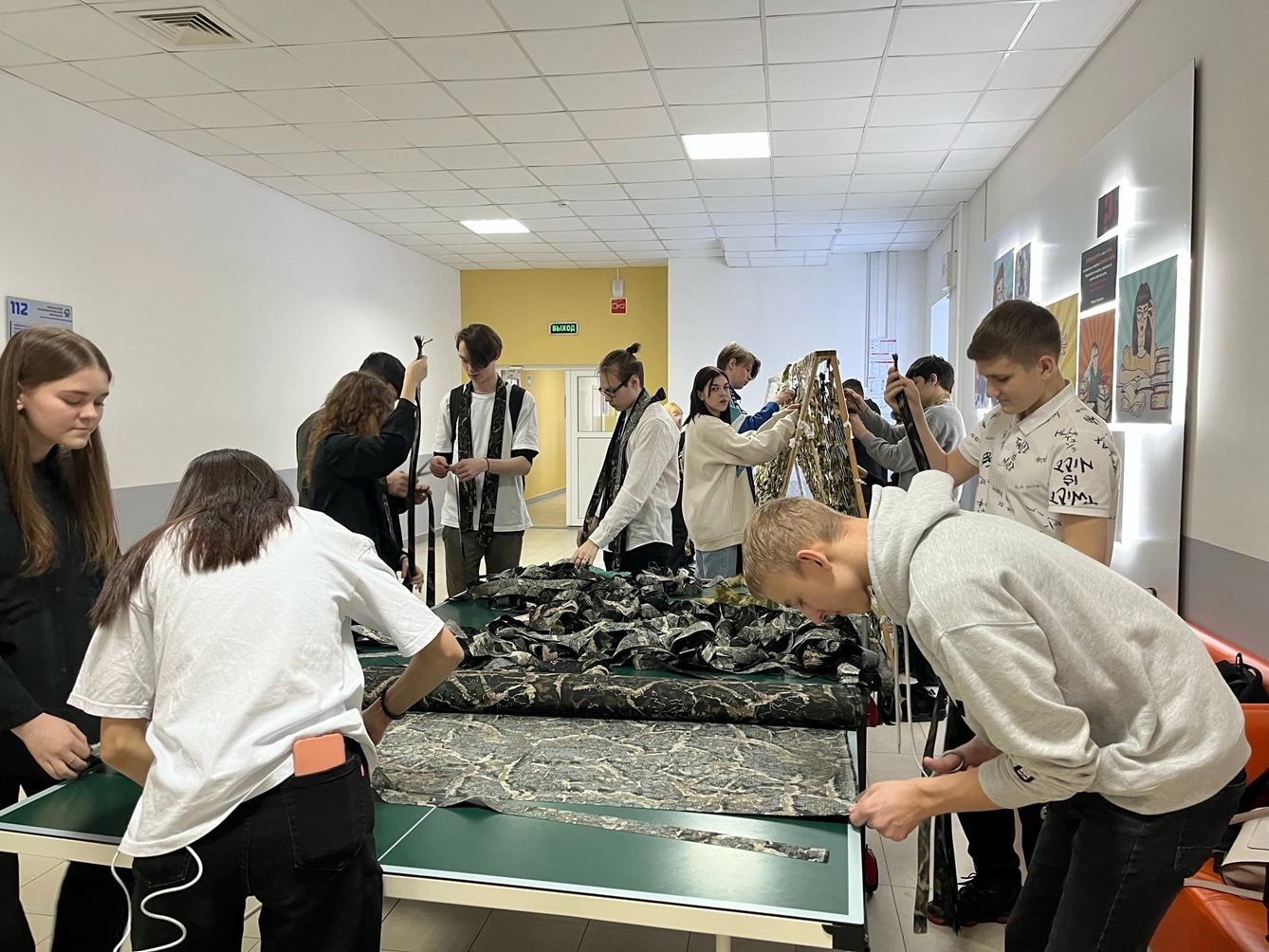 Обучающиеся БУ "Няганский технологический колледж" не перестают помогать нашим бойцам, студенты изготовили маскировочные сети.