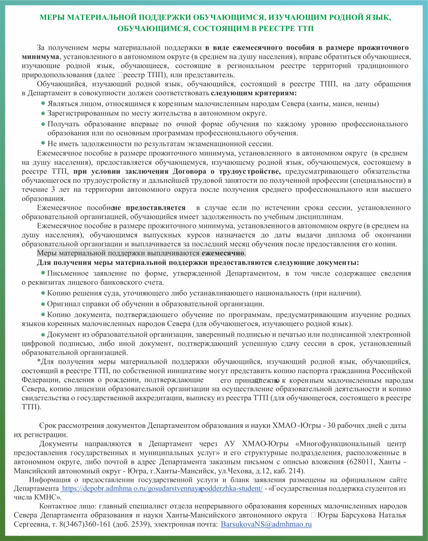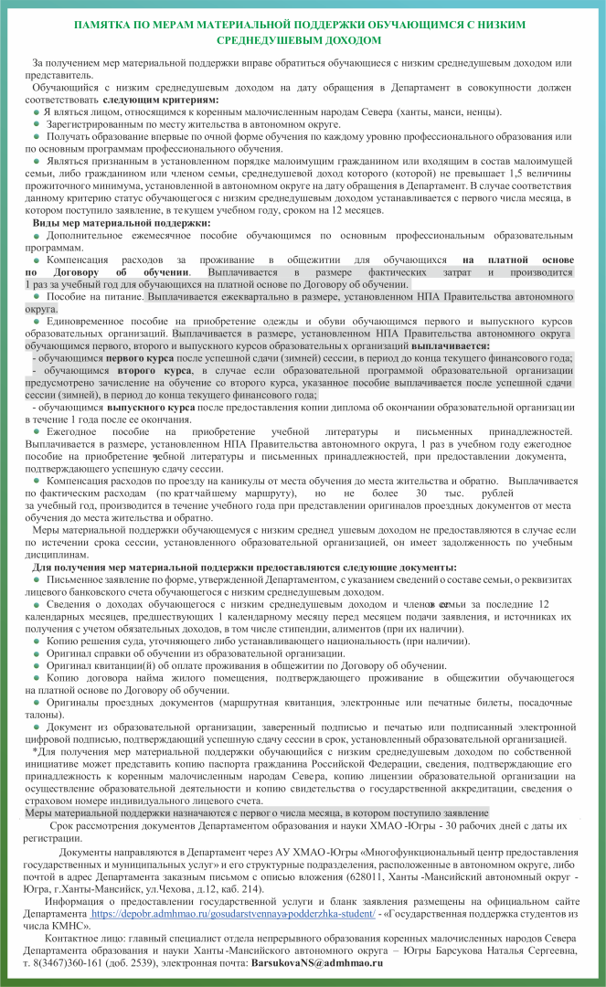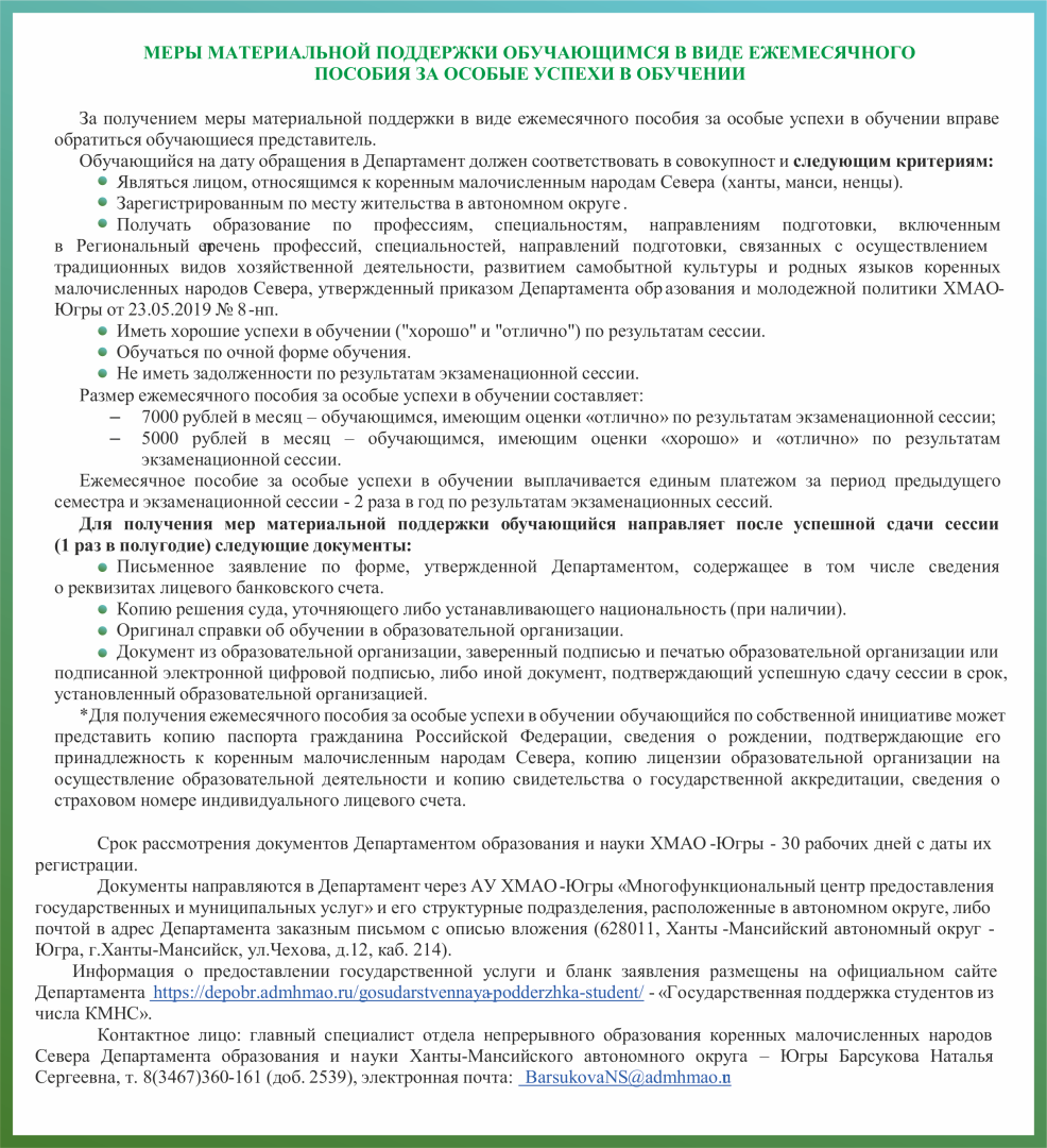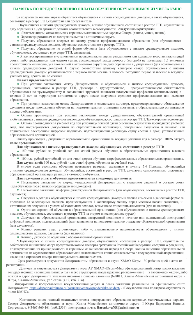 Государственная поддержка обучающихся из числа КМНС